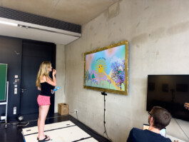 The installation can be used in places where you want to improve the mood, like offices, festivals, museums, or even hospitals. For this project, we chose an office setting, where the installation hangs in a foyer, framend like a piece of art. Employees can brighten the office by smiling at the sun, helping create a positive atmosphere and strengthen team spirit through the shared garden.